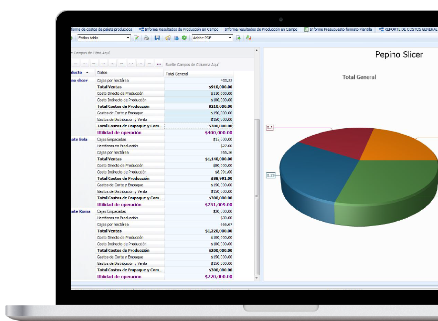 ERP agro es la plataforma tecnológica líder que integra en un único lugar toda la información administrativa y de gestión con las áreas productivas (semillero, cultivos, empaque, almacenes, expediciones, inocuidad, ventas...)..